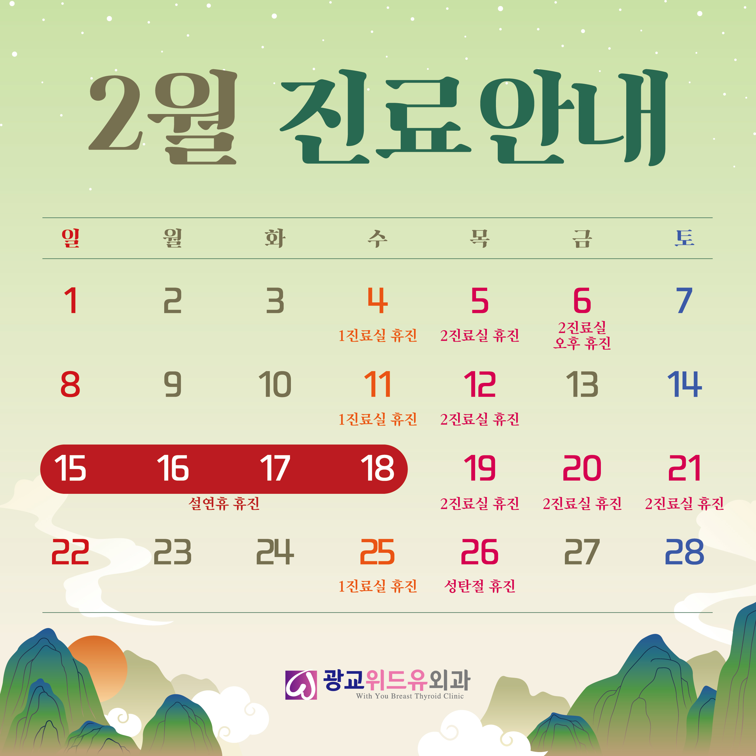 | * 토요일 점심시간 없이 진료 * 공휴일, 일요일 휴진 | ||||
